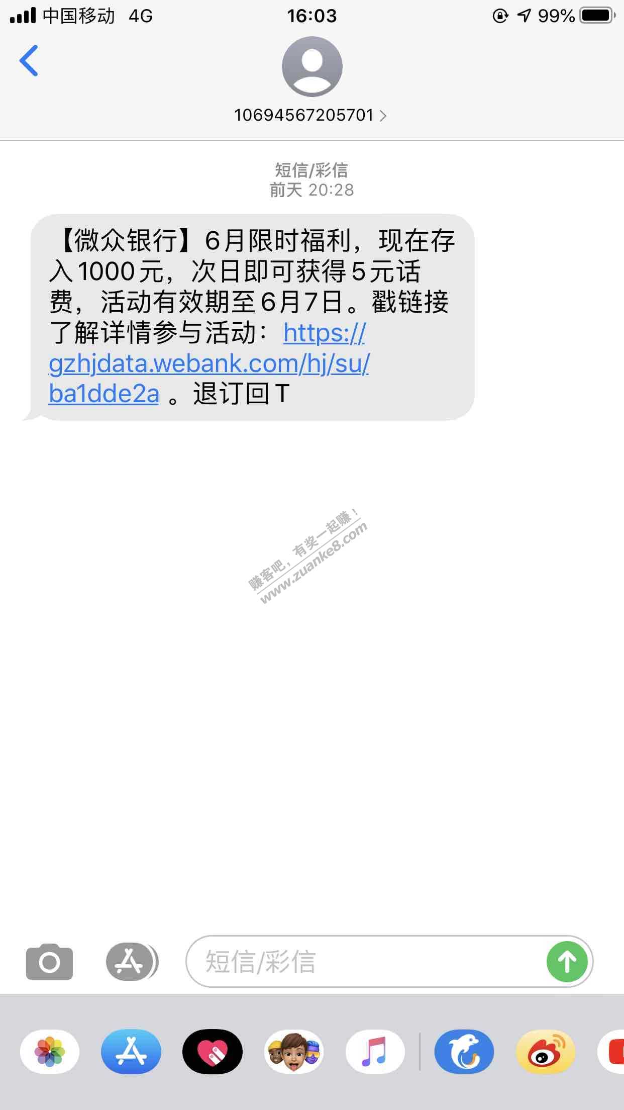 【微众银行】6月限时福利,现在存入1000元,次日即可获得5元话费,活动有效期至6月7日。戳链接了解详情参与活动:https://gzhjdata.webank.com/hj/su/ba1dde2a 。退订回T