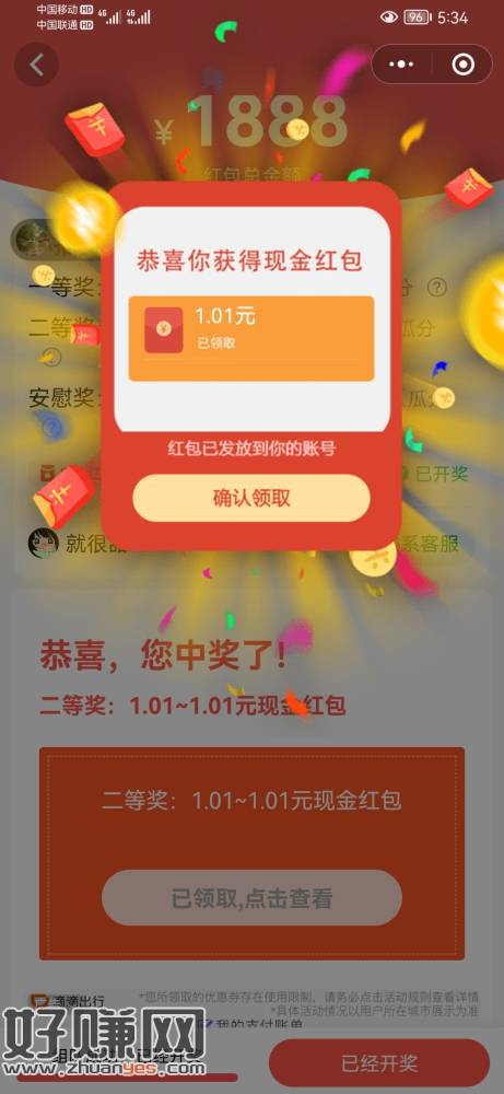 移动云盘回馈礼目前有水 基本必中3元支付宝红包 没撸