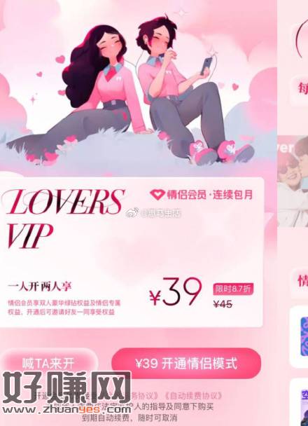 【QQ音乐上线情侣绿钻会员】一人开通两人均享受豪华绿钻权益,39亓/月比原本各开各的还贵了十块左右,大怨种上叭https://i2.y.qq.com/n3/cm/pages/couplevip/pay/index.html