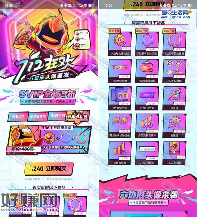 购买后还赠彩色昵称,24个月712至尊铭牌等,有需要的抓紧去续费了