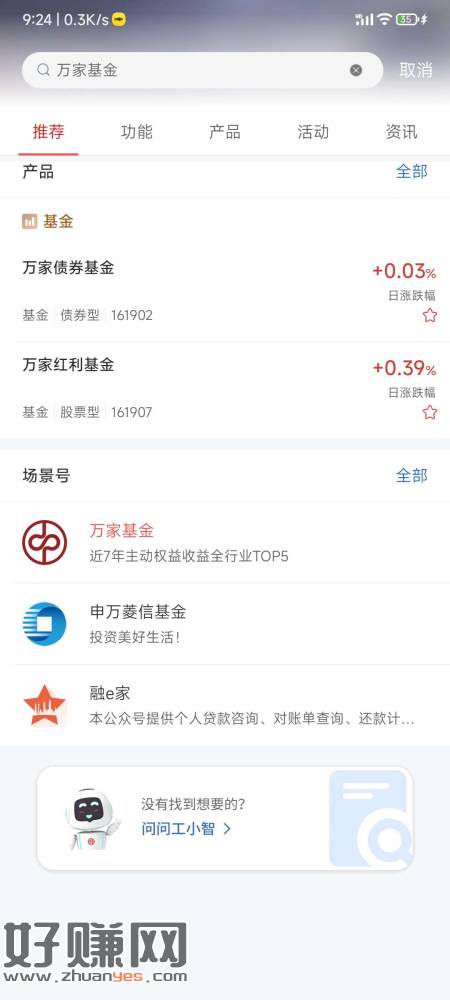 打开中国工商银行APP搜索“万家基金”进去场景号里,点滚动图