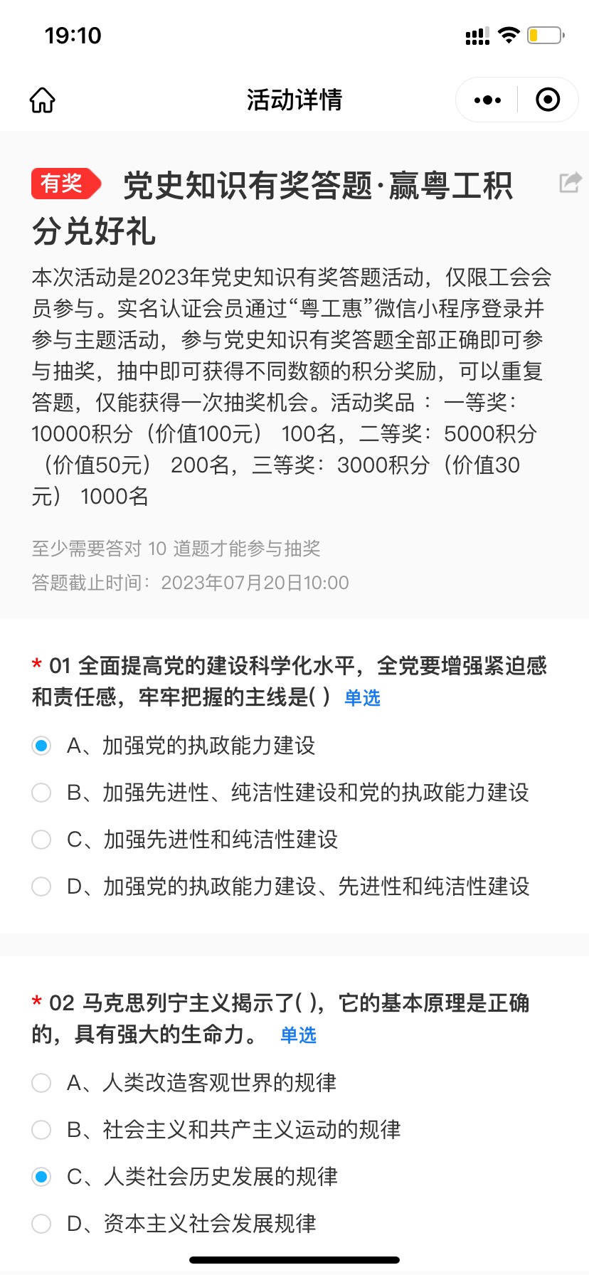 粤工会新活动,20号开奖!老哥们可以去参与一下运气好就中了!答案是dc
