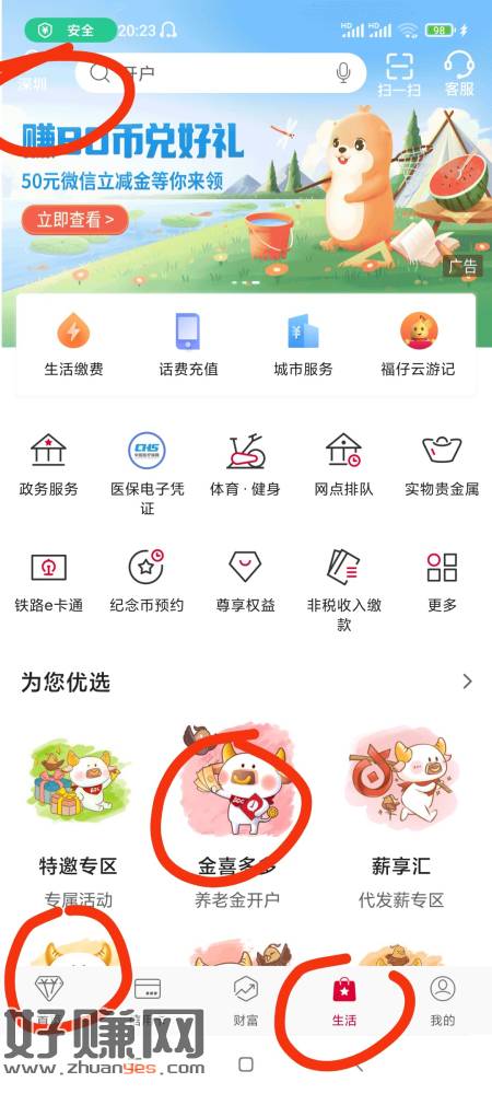 2.去生活-金喜多多领如图20元,这个都可以领。