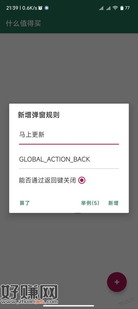b站看的,除了自动跳广告,还可以利用规则自定义某些操作,比如说自动关闭更新弹窗,通过新增规则找到应用,第1行选择要识别的内容,第2行选择关掉的操作,以张大妈为例,用返回键可以关掉弹窗,那第1行就填马上更新,然后把下面的能否通过返回键关闭勾选就可以了,还有一些更进阶的方法自行搜索,李跳跳我愿称之为最强APP