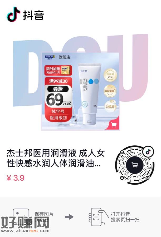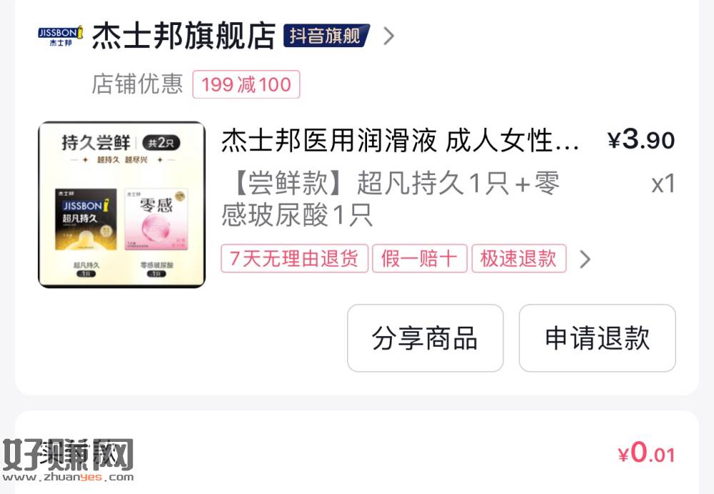 抖音扫码,两只杰士邦0.9,有些号有卷可减1,0.01下单