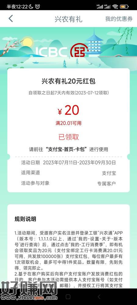 兴农通又是20,这次是领到支付宝