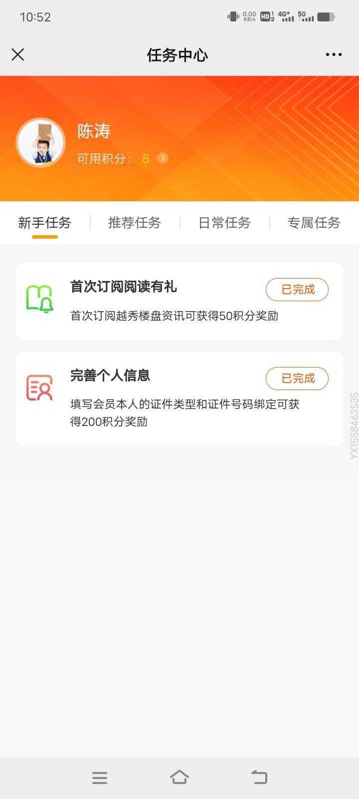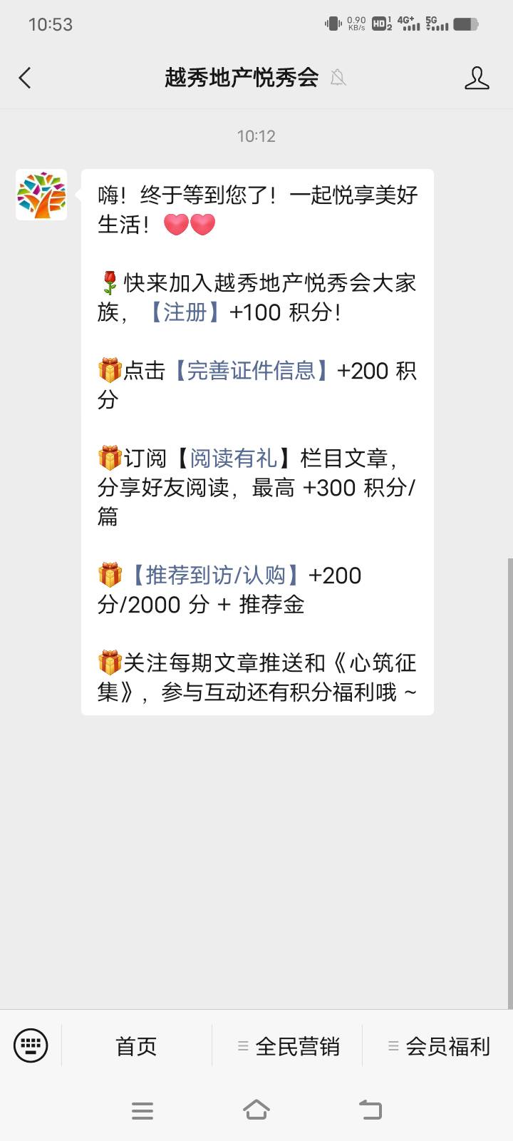 微信小程序搜索:悦秀会,攻略完成任务领600积分,去生活卡券去兑换喜马拉雅月卡。小程序进去就送一百积分,积分攻略进去点皇上皇注册在送100积分,关注公众号越秀地产越秀会完善身体信息200分,阅读有礼点进去订阅送50分,推荐到访名字电话随便填100分,积分攻拉自己小号送50分刚好600。