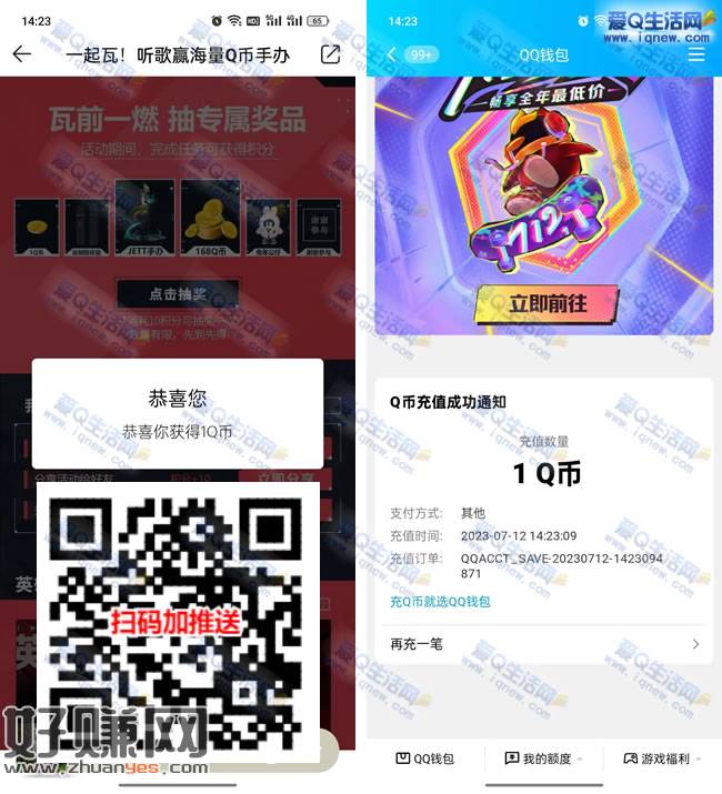 一下然后抽奖即可,我是亲测1Q币秒到的哦