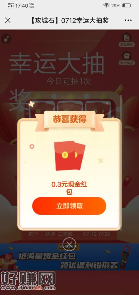 余额宝活动,完成任务抽奖,刚抽了3个红包