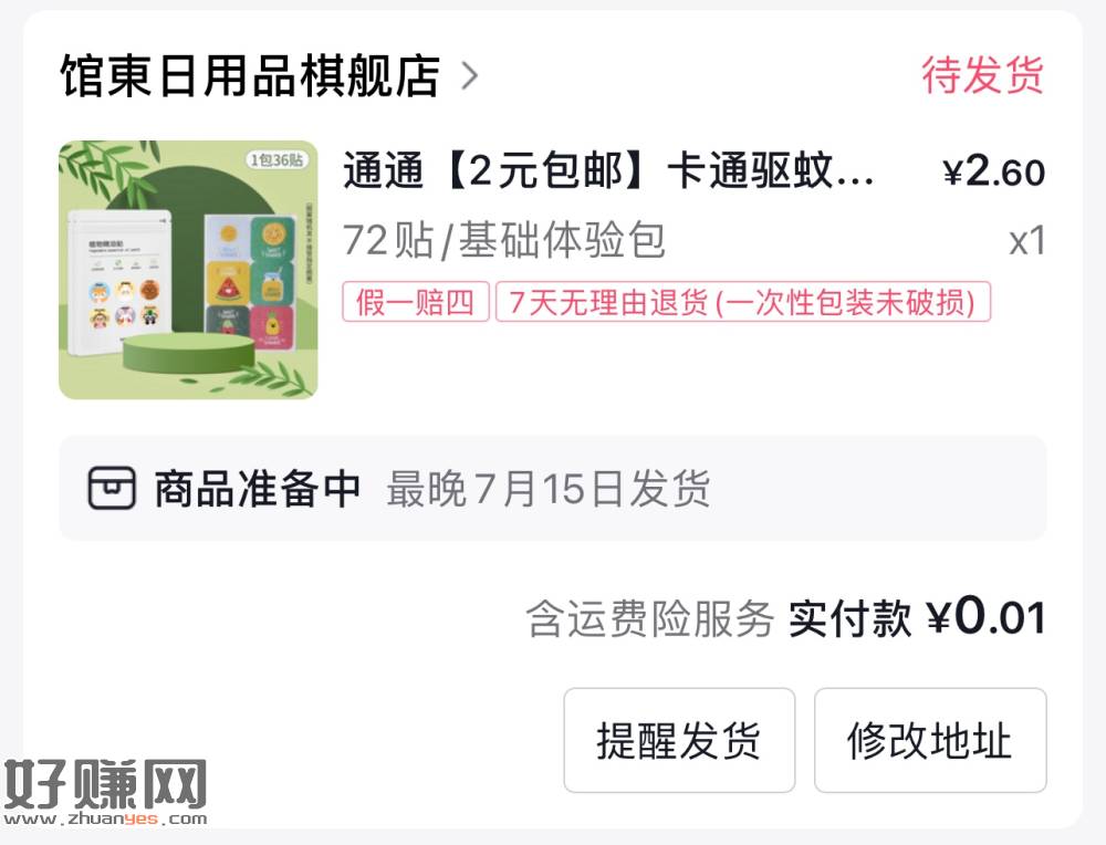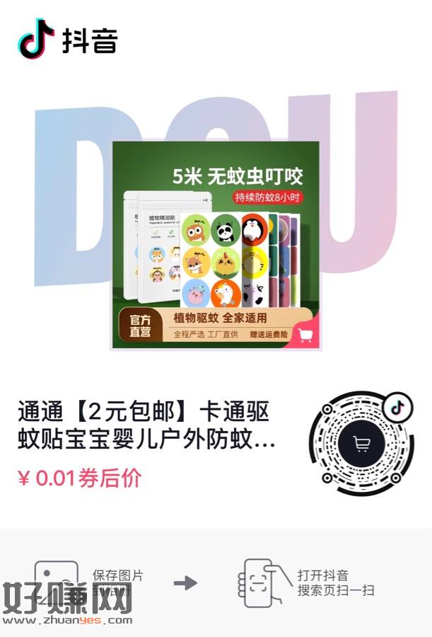 抖音扫码,0.01包邮驱蚊贴72张,多号多冲