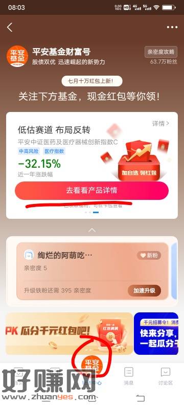 支付宝搜平安财富号,粉丝中心,横幅滚动3个任务做完,小号9毛