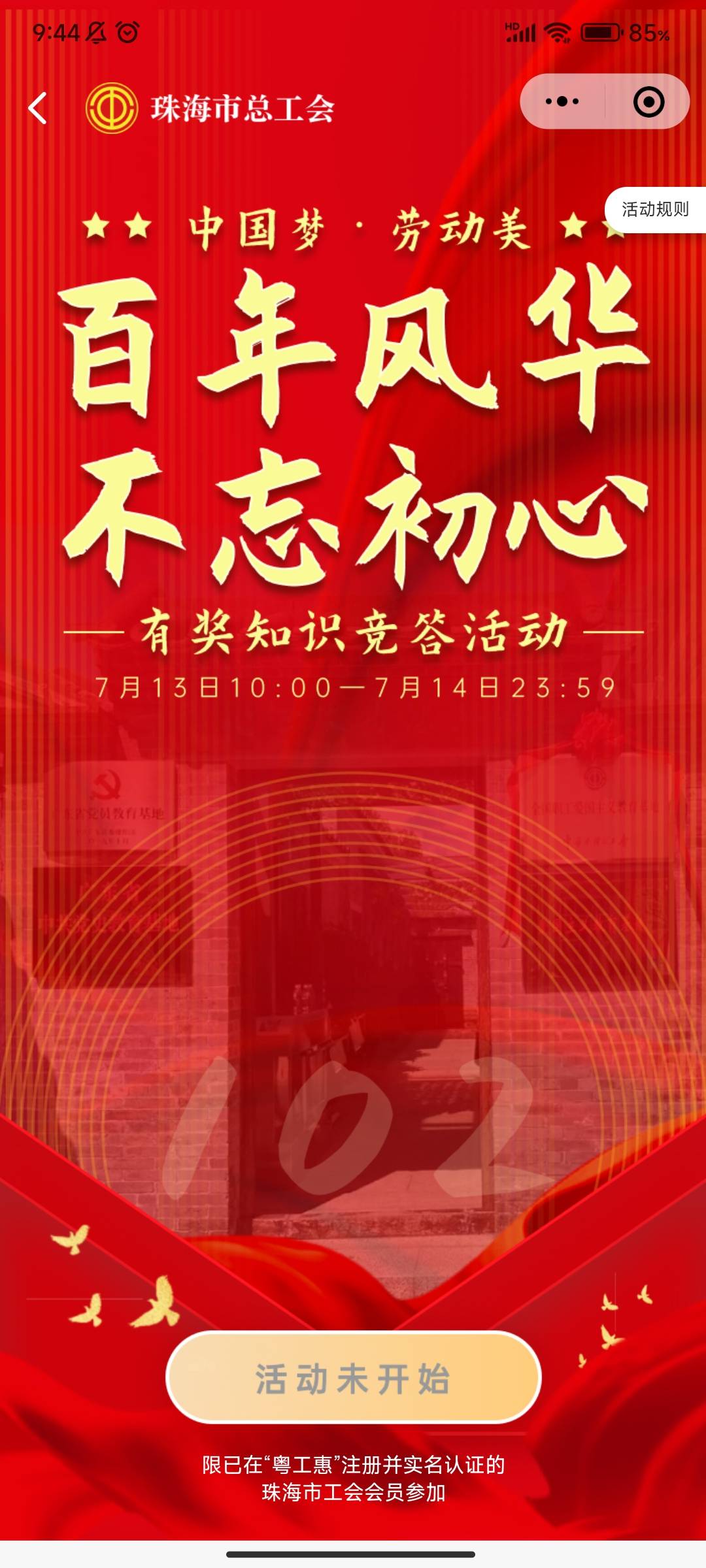 珠海工会,实名认证会员,答题,10点!!! 百年风华,不忘初心!!!