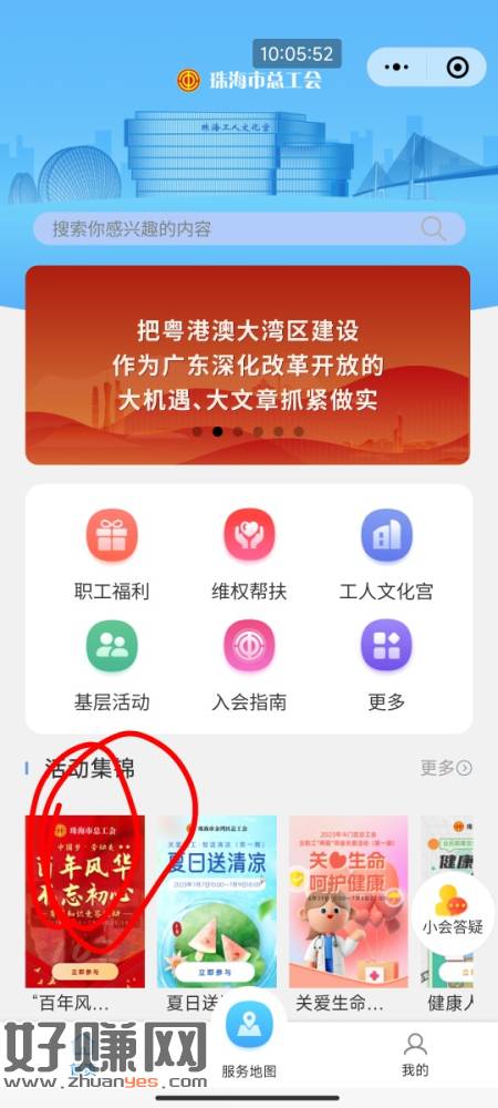 微信小程序珠海工会。答对五道抽奖。。分享给别人。再增加一次机