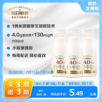 高端鲜奶??每日鲜语 ,①全脂1L,每期3瓶