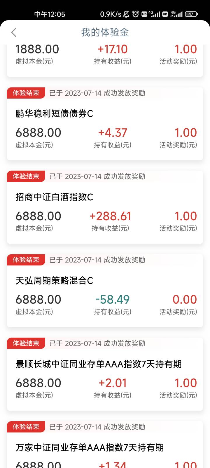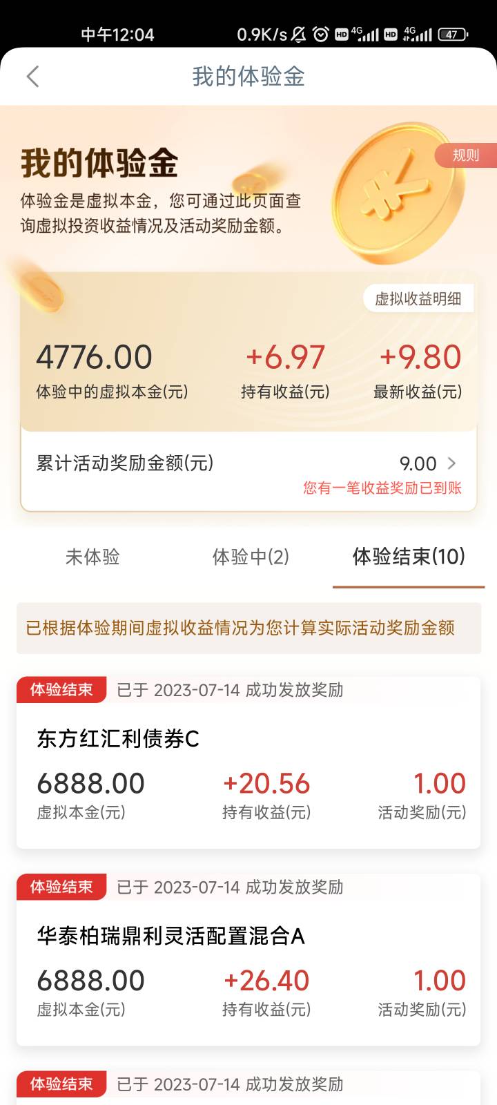 工行财富社区体验金9毛到帐,没弄的老哥可以冲,但一个正收益才给一毛