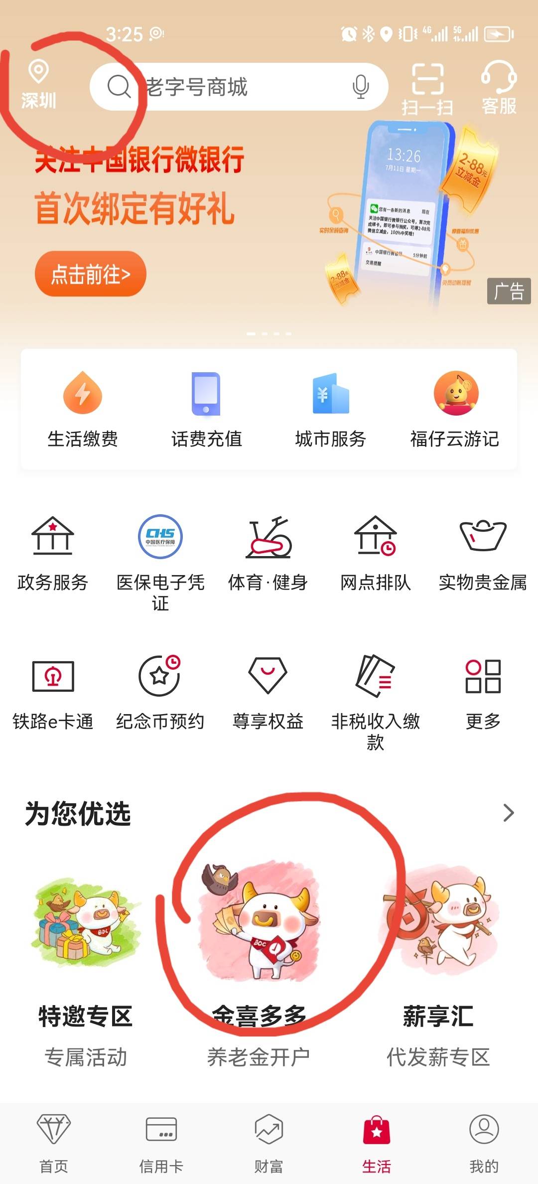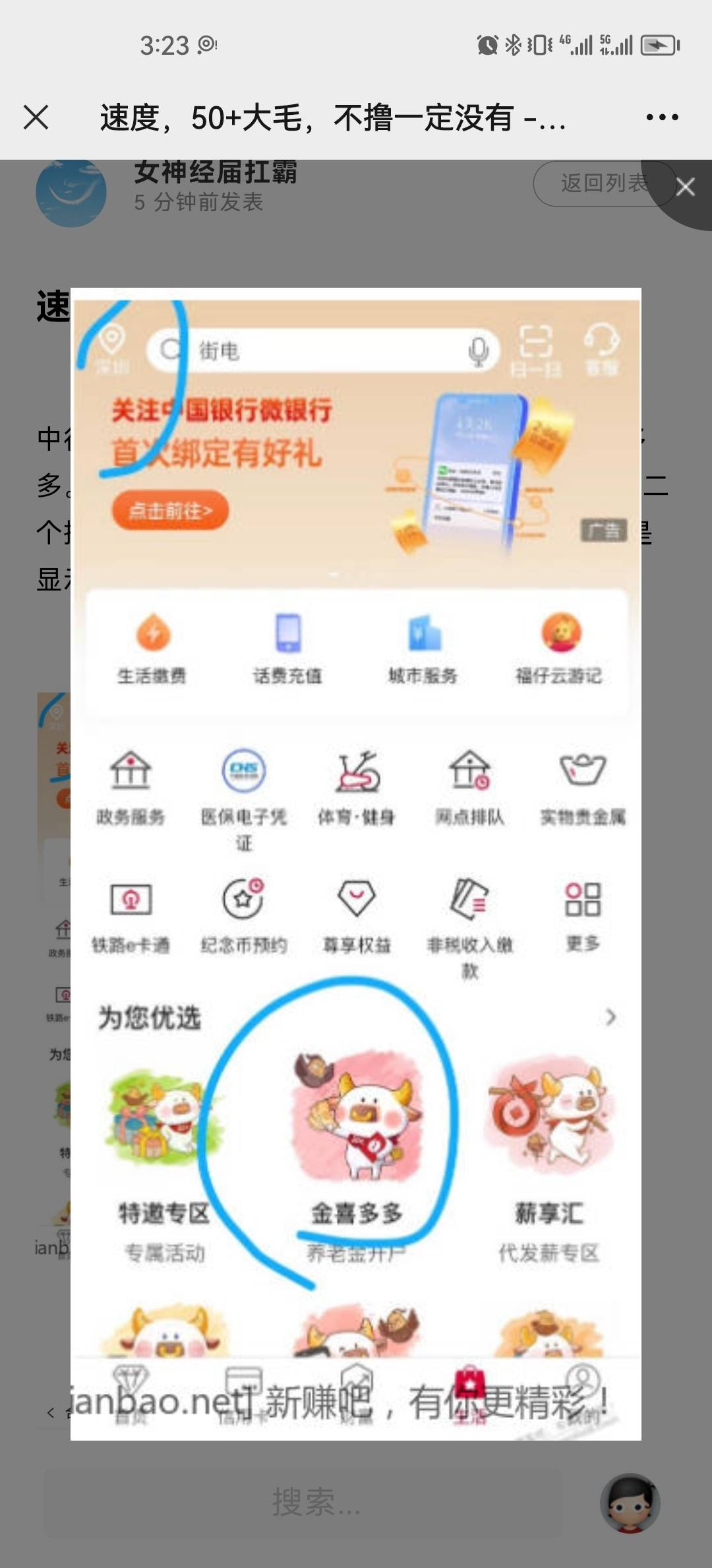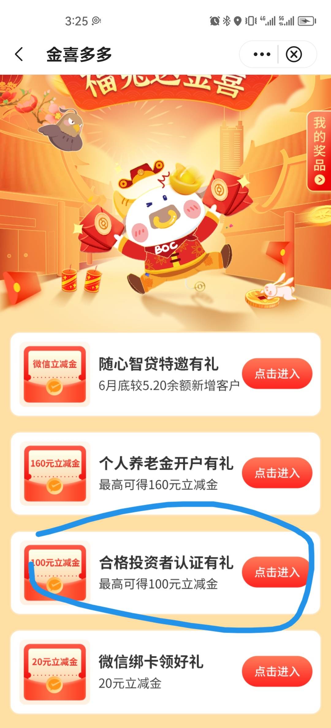 速度,50+大毛,不申请一定没有 中行ap,生活,左上角改深圳。下拉有一个金喜多多。进去之后有个合格投资认证有礼,点进去,第二个抽奖,不用投资也能抽,现在都是50-100。但是显示审核