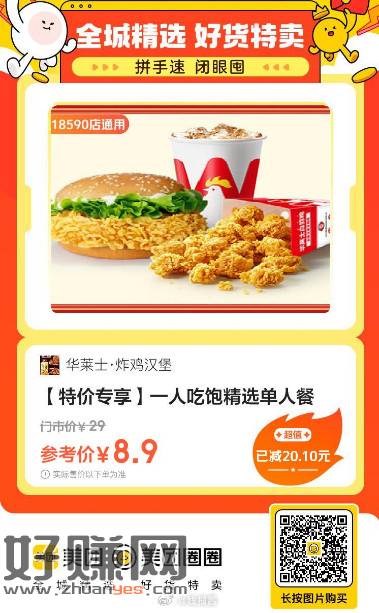 华莱士·全鸡汉堡|一人吃饱精选单,8.9