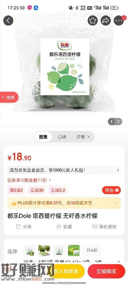 【9.9元10个包邮】都乐Dole 塔西提无籽香水柠檬单果40-60g