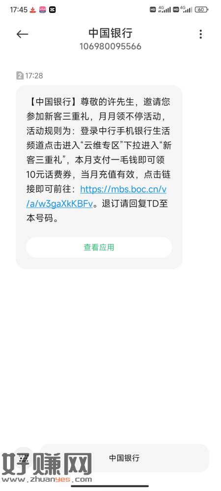 每月10话费,共三个月,中行生活改合肥,不知道是不是限制安徽,
