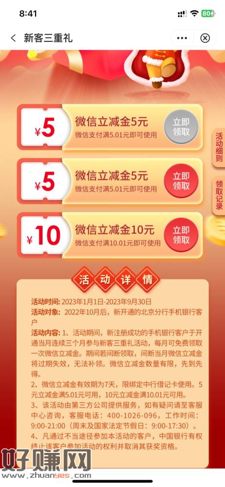 注销重新开,就有机会了,不知道我这个是怎么得来的,开了几年了
