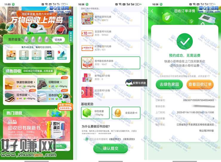 菜鸟搜【绿色家园】点击【回收广场】-热门项目 回收旧书 选择你要的奖品 等待 回收员上门回收【至少需要5本旧书】