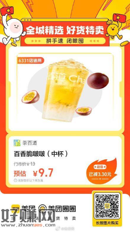 茶百道|百香脆啵啵(中杯),9.7