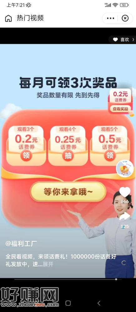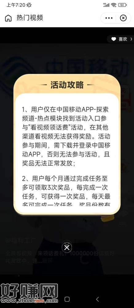 中国移动-探索-热点-看视频领话费流量,刚领0.2话费