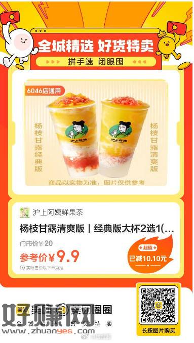 沪上阿姨鲜果茶|杨枝甘露清爽版丨经典版大杯,9.9