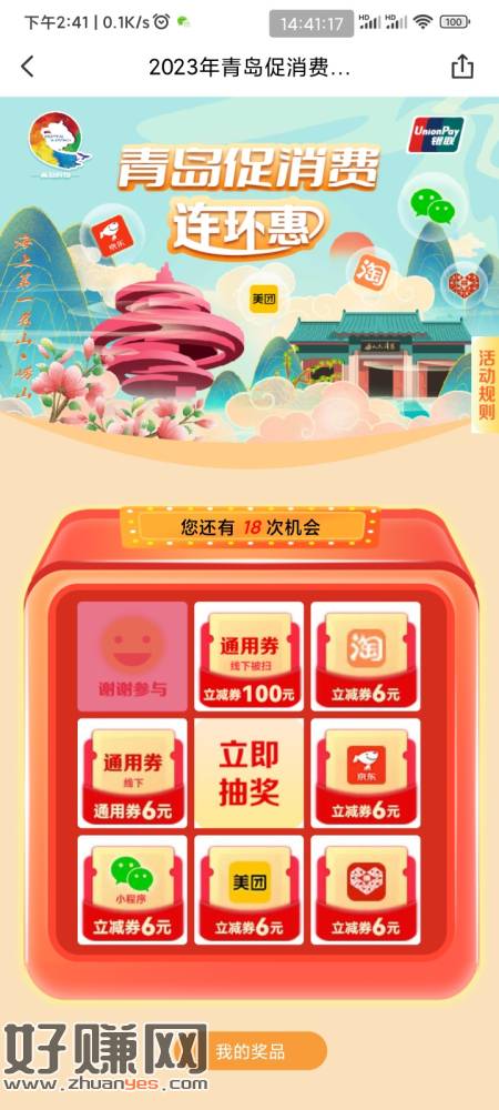青岛本地的 云闪付看看这个活动 目前水很大 我30次中了9个