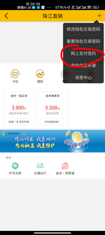 广州农商小程序新开的绑不了去广州农商app首页珠江直销银行-右上角加号网上支付签约进去签然后审核中等通过就能绑了 还是不行就去身份信息补录一下