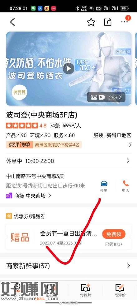 大众点评搜波司登,如图所示可领一个防晒晒帽