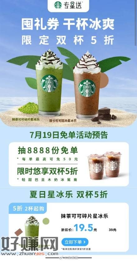 美团搜星巴克免单,19号有免单活动,可提前康康