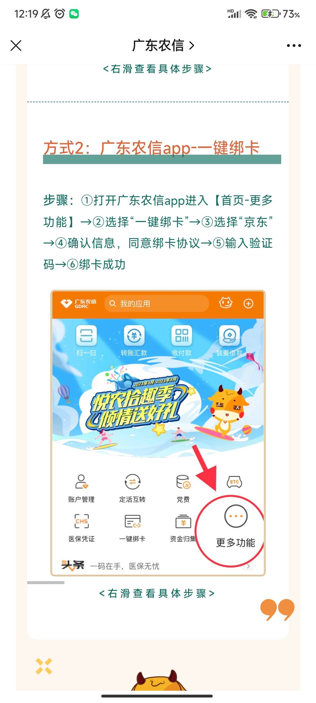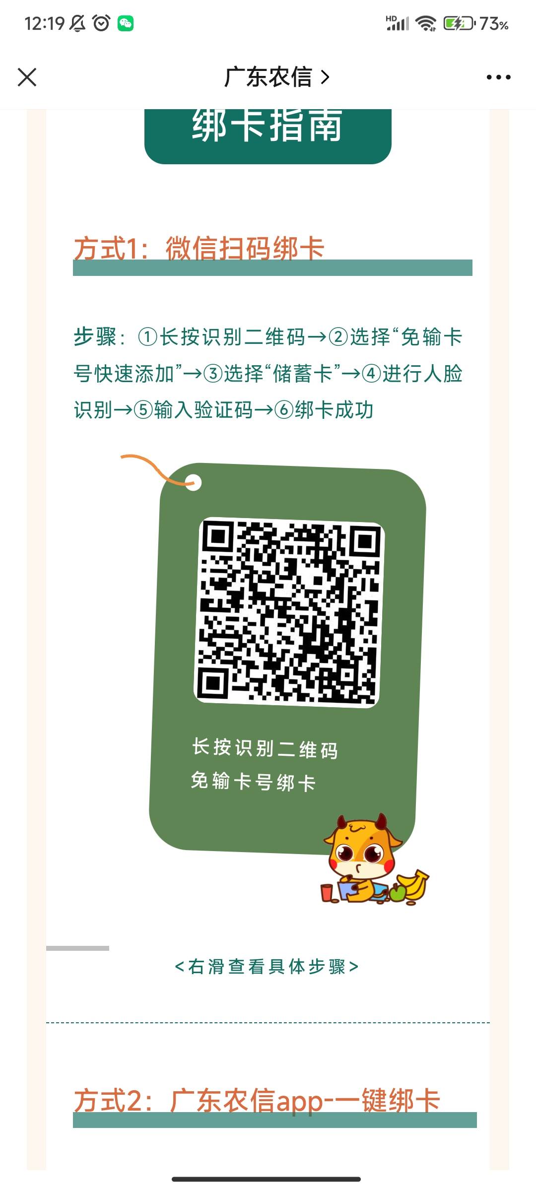 通过vX扫描广东农信专属绑卡二维码,或通过“广东农信APP”一键绑卡功