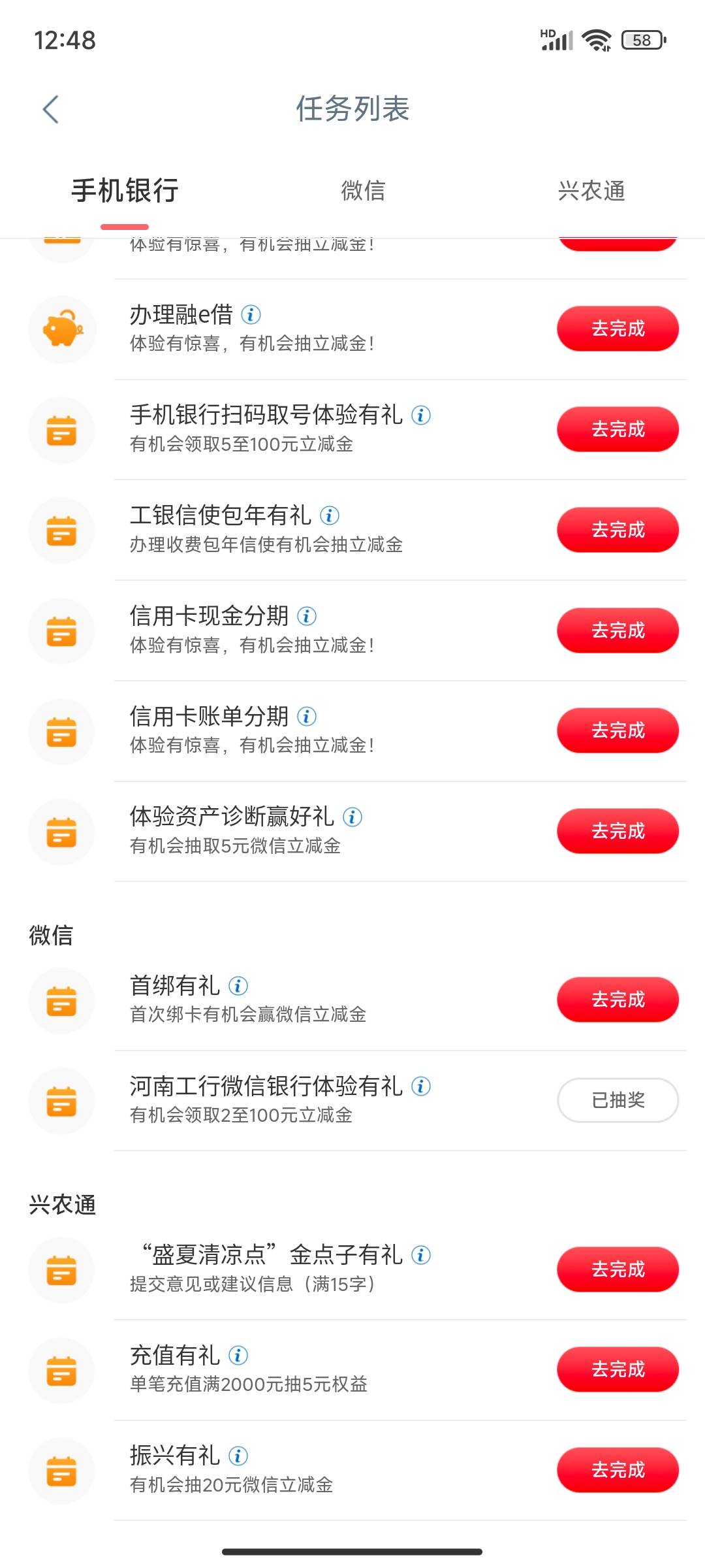 河南工商银行微信体验有礼小毛