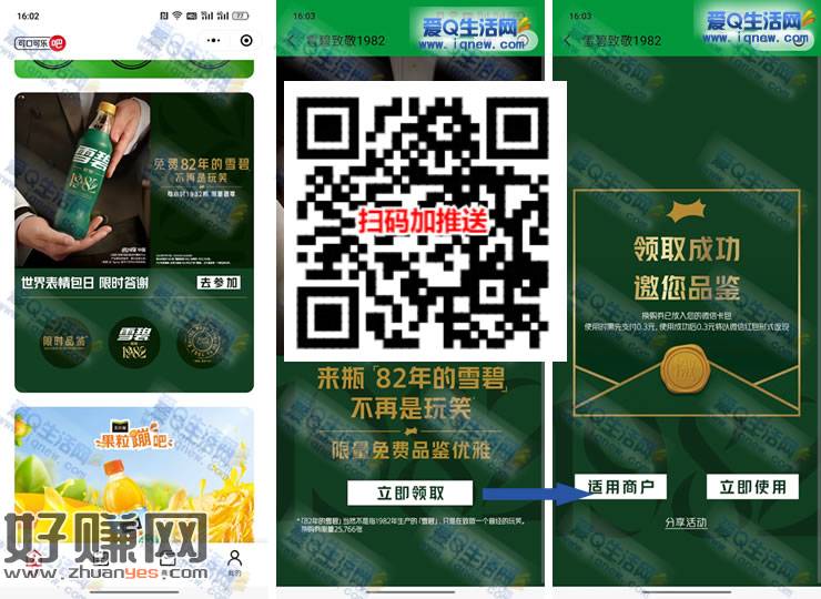 微信打开下方地址-下拉至【世界表情包日 限时答谢】去参加 获得雪碧兑换券 需要支付0.3亓 支付的0.3亓会返还