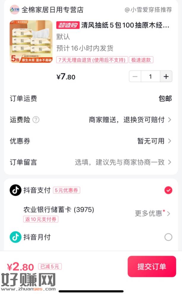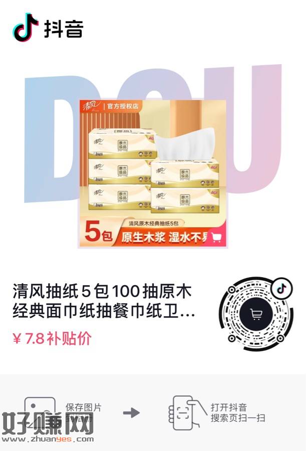 抖音扫第一个码领5元卷,扫第二个码拍下付款2.8元