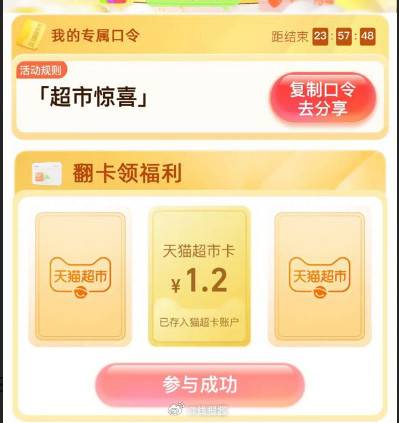 猫超首页—右下角惊喜口令,口令是【超市惊喜】