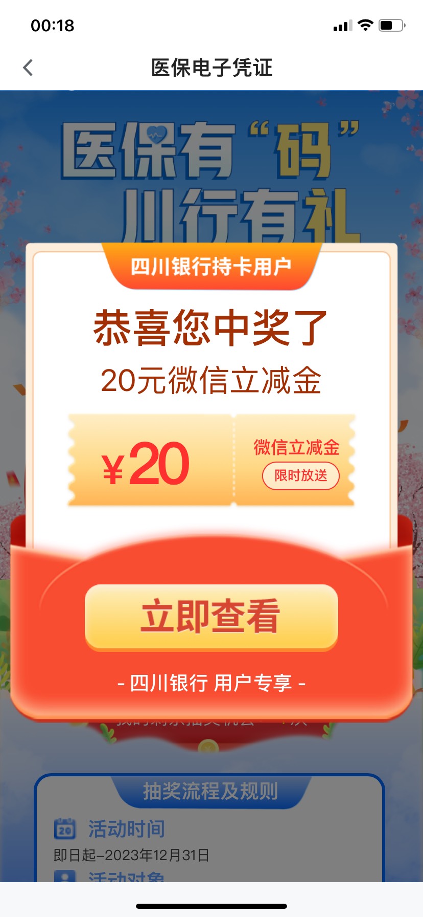 四川Bank APP打开,首页滚动横幅“医保激活有礼”,不