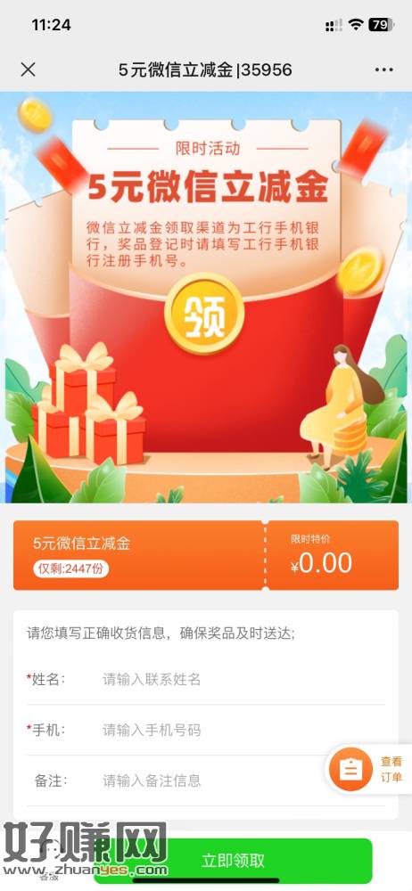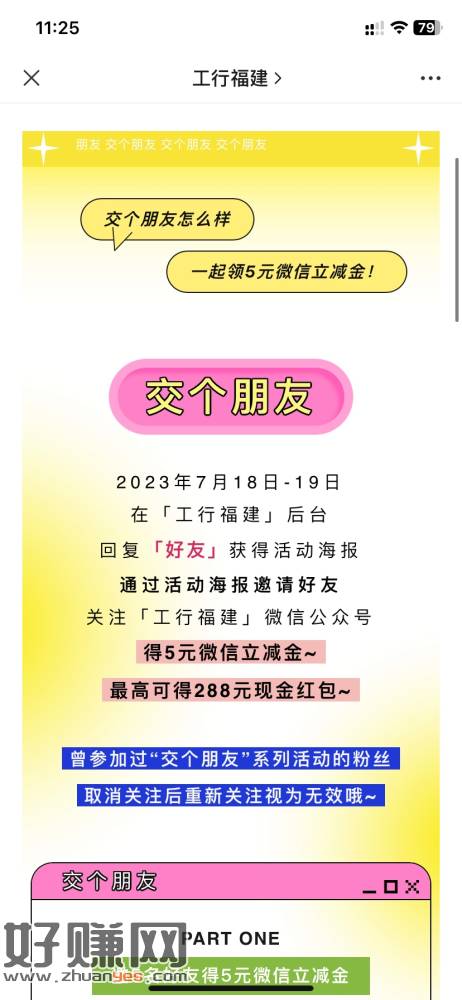 公众号工行福建 推文第一条 拉5人关注5立减 目前还有库存