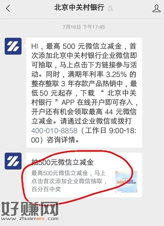 老毛!关注北京中关村银行公众号,可抽立减金,大的可以开卡