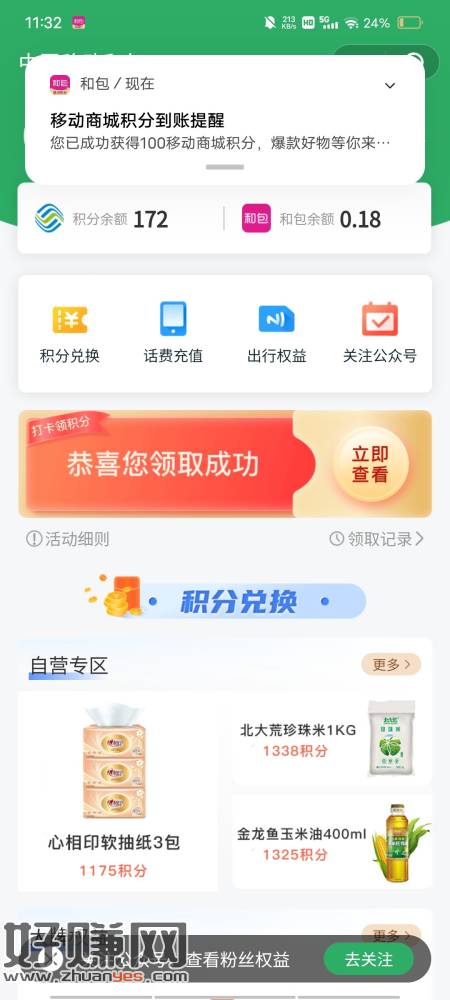 温馨提示 中国移动和包还没更新 下面有几个拿商城积分活动我总结一下