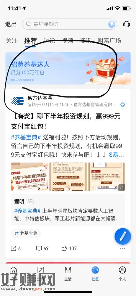 交行app-生活-横幅招募养基达人-会买会配长期持有这三个下