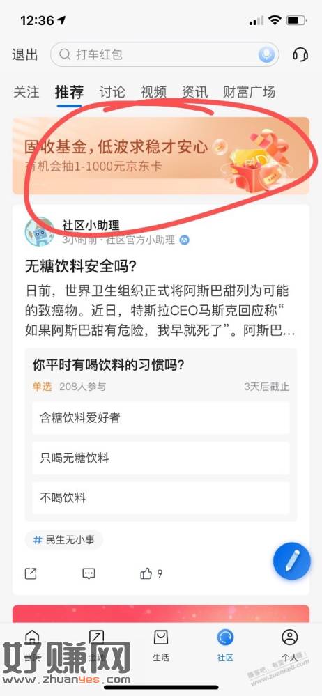 交通银行APP-社区- 横幅 抽京东e卡,可抽三次。