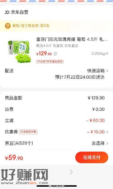 59.9,阳光玫瑰青提4.5斤礼盒