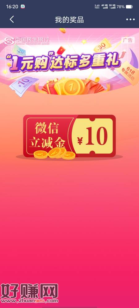 领取1元购活动达标礼,数量有限先到先得,如已领取请忽略,详询95568。TD退订【民生银行】