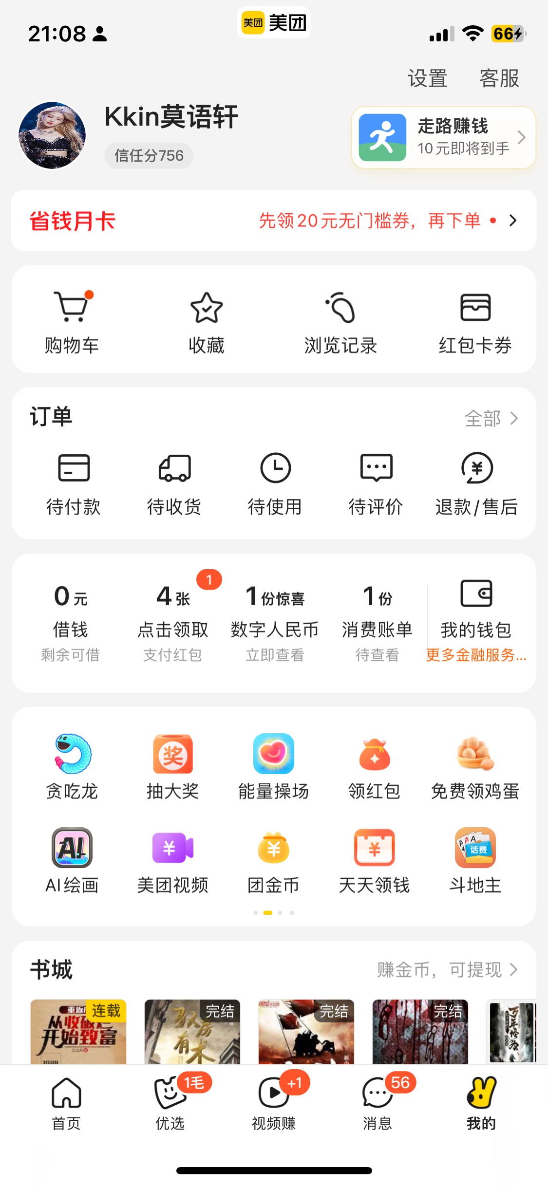 美团设置我的…美团视频,差不多2毛,新老用户都可以,一星期以上。觉得少