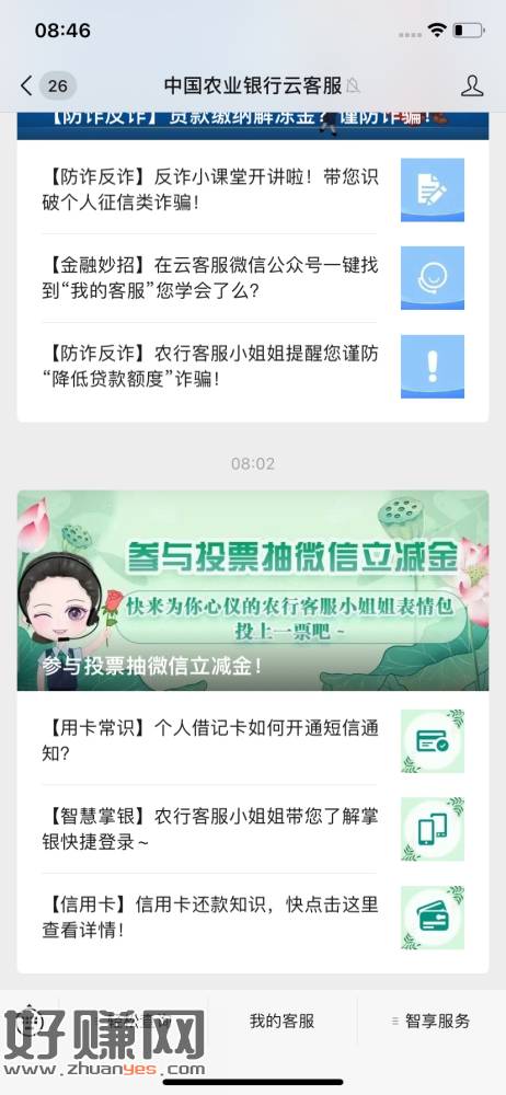 关注 中国农行银行云客服 投票抽立减金 貌似没水