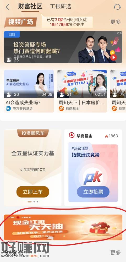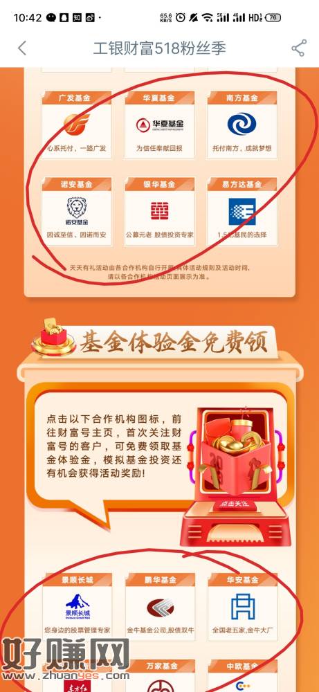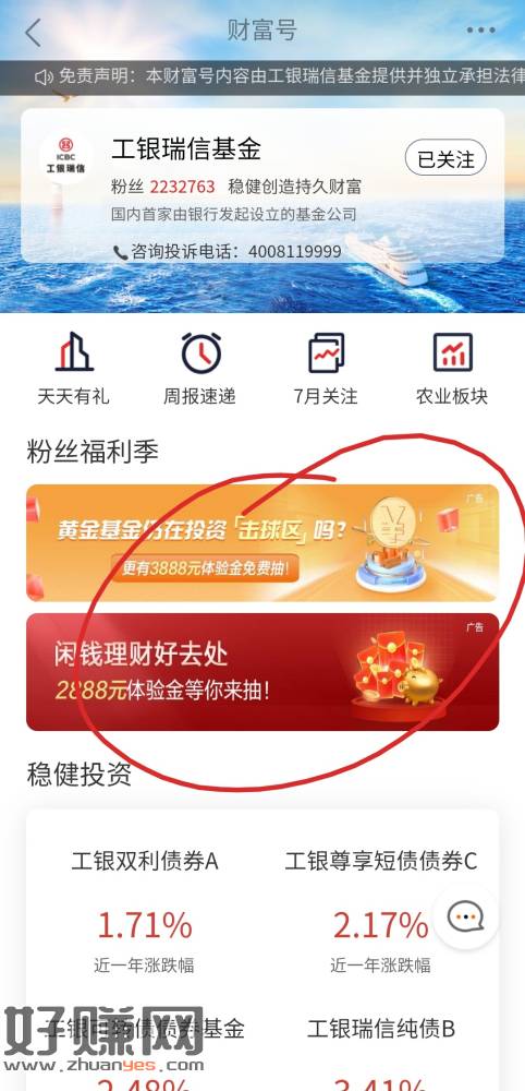 另一个体验金,工行app搜 工银瑞信基金,点场景号里的“工银瑞信基金”,2个体验金如图