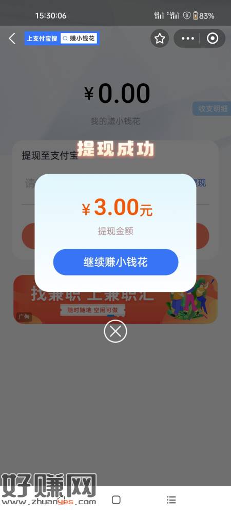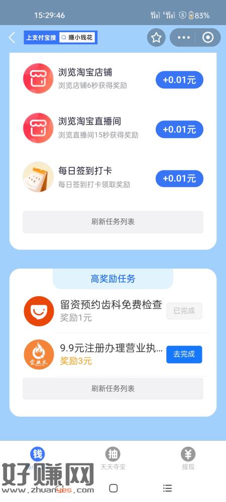 zfb搜赚小钱花,预约牙科一号4/5毛,做完一个刷新任务继续