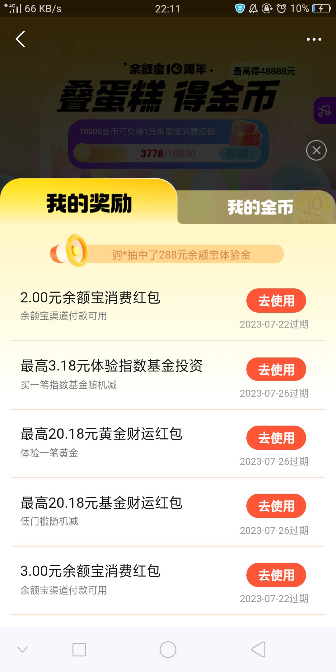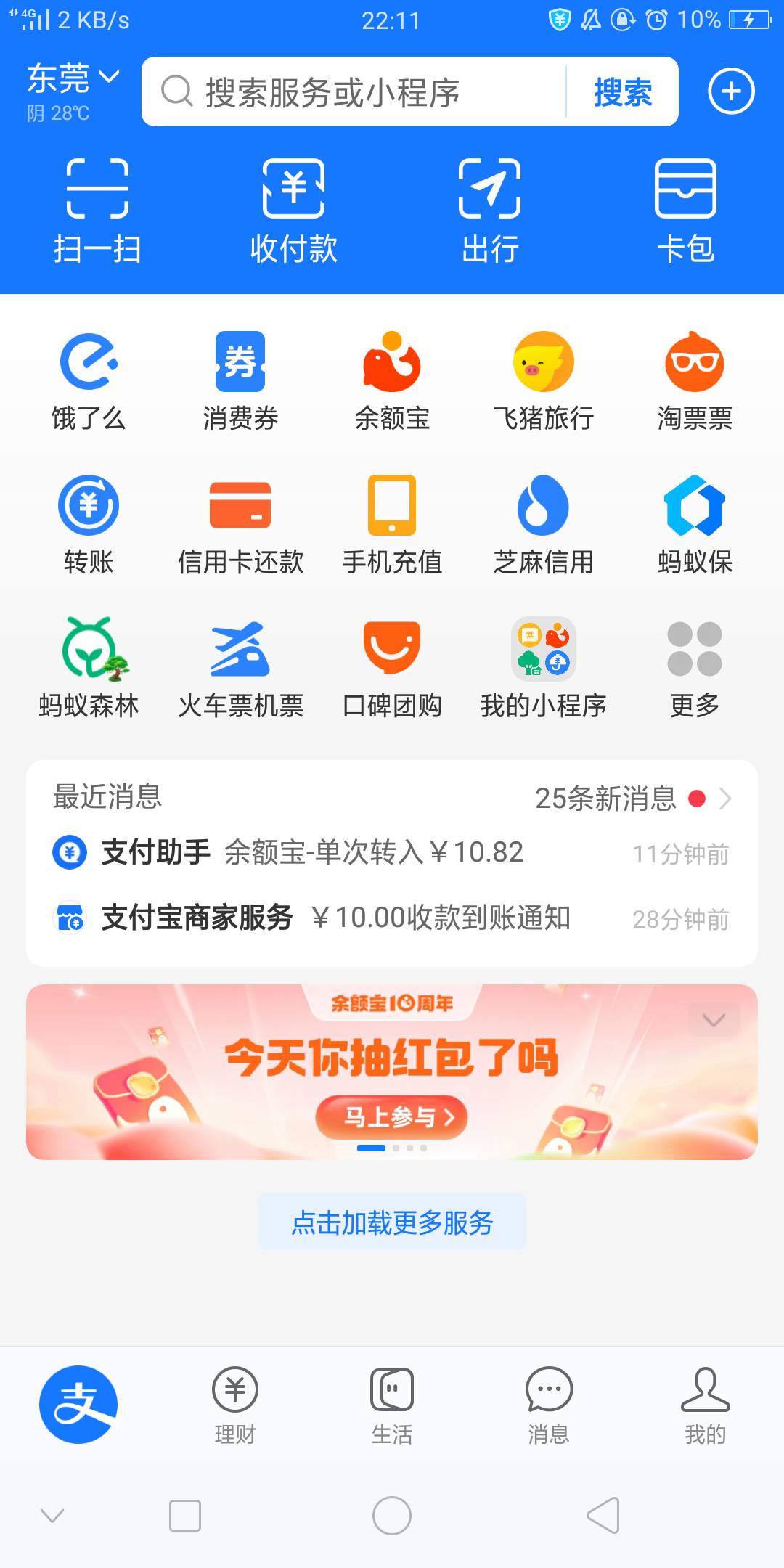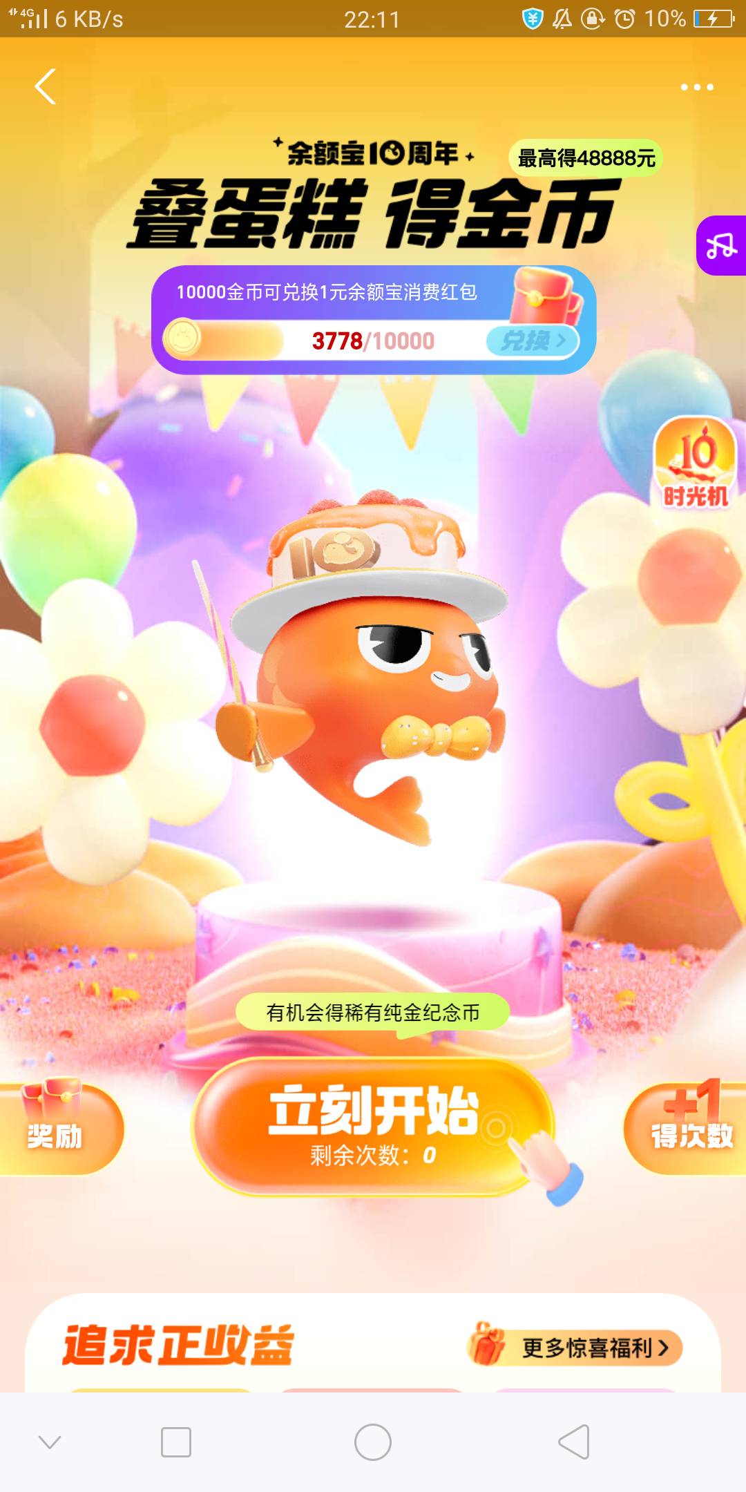支付宝首页,余额宝10周年,没次数了点加次数!